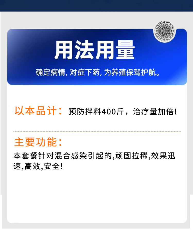 產品簡介:針對混合感染引起的頑固性拉稀,效果迅速,高效安全!