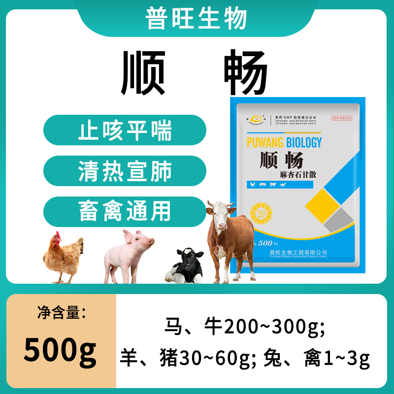(1)(異物肺炎、氣管炎)咳嗽、細(xì)菌性咳嗽:單用本品拌料既能達(dá)到很好的療效,特別對(duì)群發(fā)性干咳效果尤為明顯。