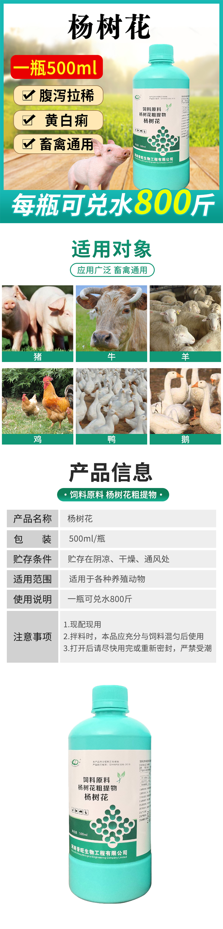 【使用說明】馬、牛50-100ml,羊、豬10-20ml,兔、禽1-2ml。