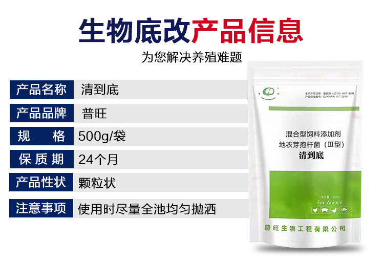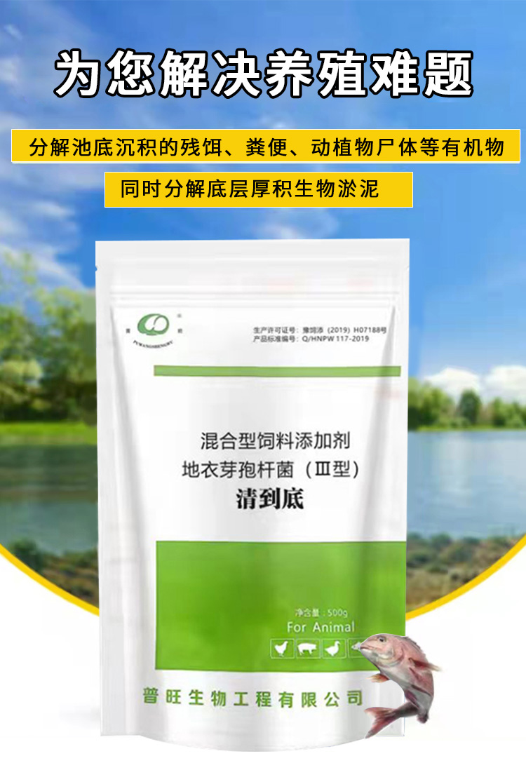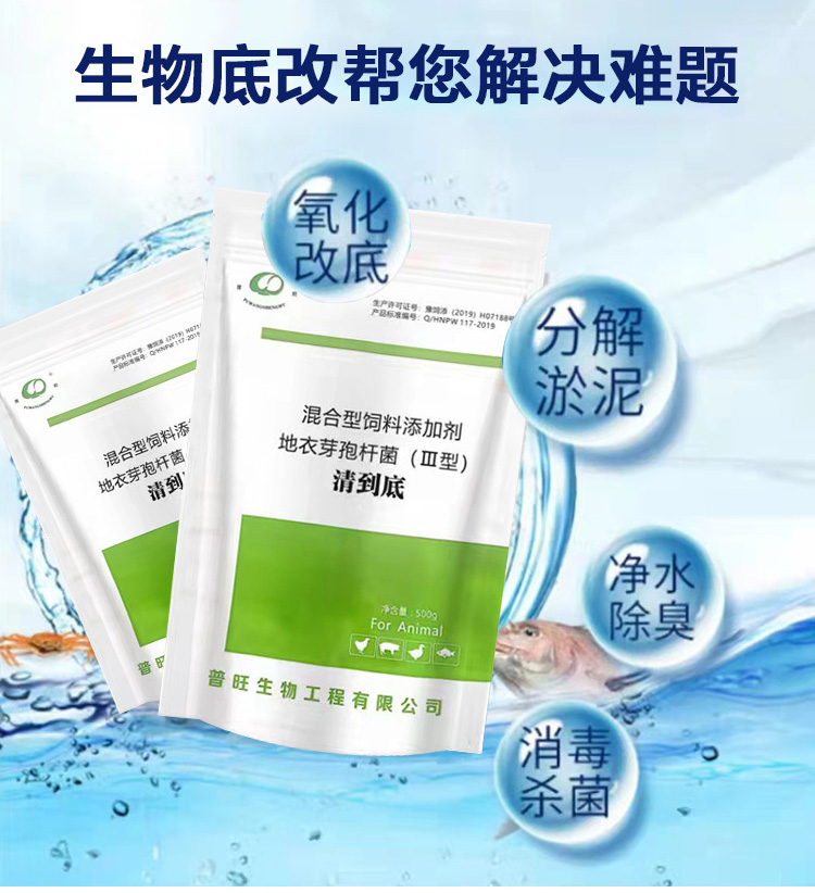 產品簡介:普旺生物水產藥清到底 改底調水增氧除臭分解淤泥混合型飼料添加劑-地衣芽孢桿菌 分解池底沉積的殘餌、糞便、動植物尸體等有機物,同時分解底層厚積 生物淤泥。生物改底幫你解決難題。