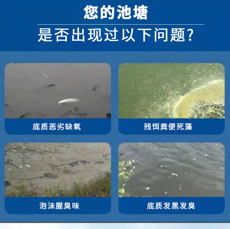 分解池底沉積的殘餌、糞便、動植物尸體等有機物,同時分解底層厚積 生物淤泥。生物改底幫你解決難題。" />