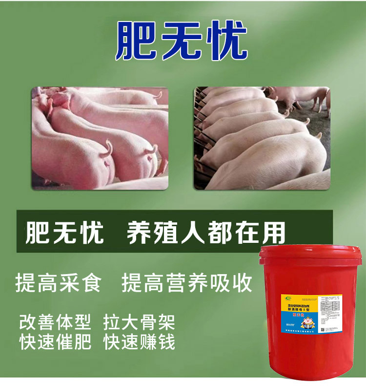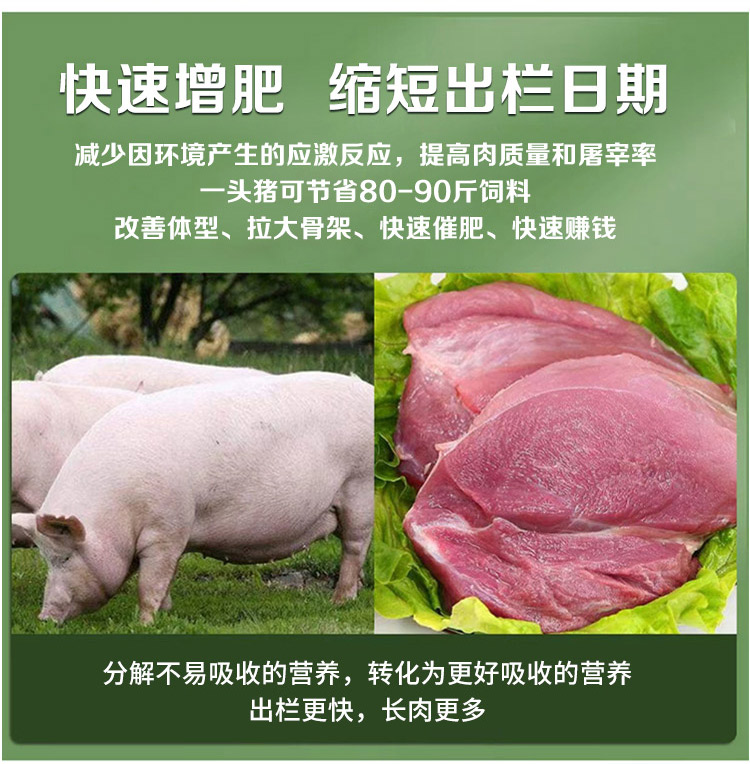 產(chǎn)品簡介:普旺新版GMP獸藥廠家肥無憂長肉快早出欄,益生菌促進營養(yǎng)吸收,快速增肥,縮短出欄日期,減少因環(huán)境產(chǎn)生的應(yīng)激反應(yīng),提高肉質(zhì)量和屠宰率,一頭豬可節(jié)省80-90斤飼料,改善體型、拉大骨架、快速催肥、快速賺錢。