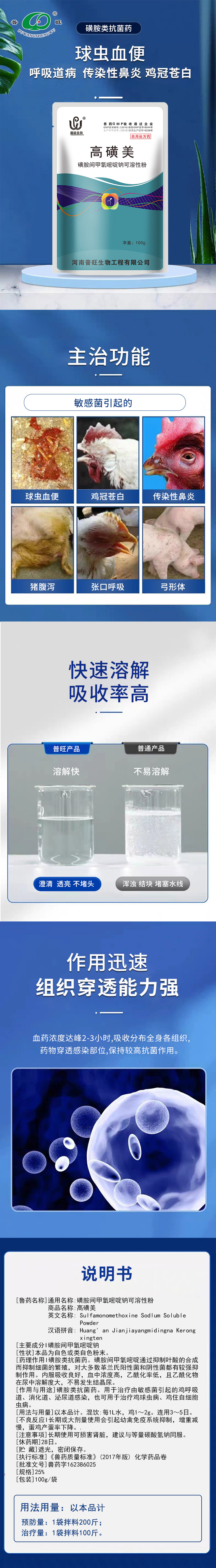 高磺美球蟲血便呼吸道病傳染性鼻炎雞冠蒼白畜禽通用