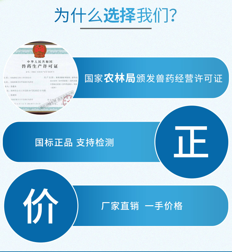 【參考用量】飲水:本品500g兌水2000斤,供畜禽自由飲用。