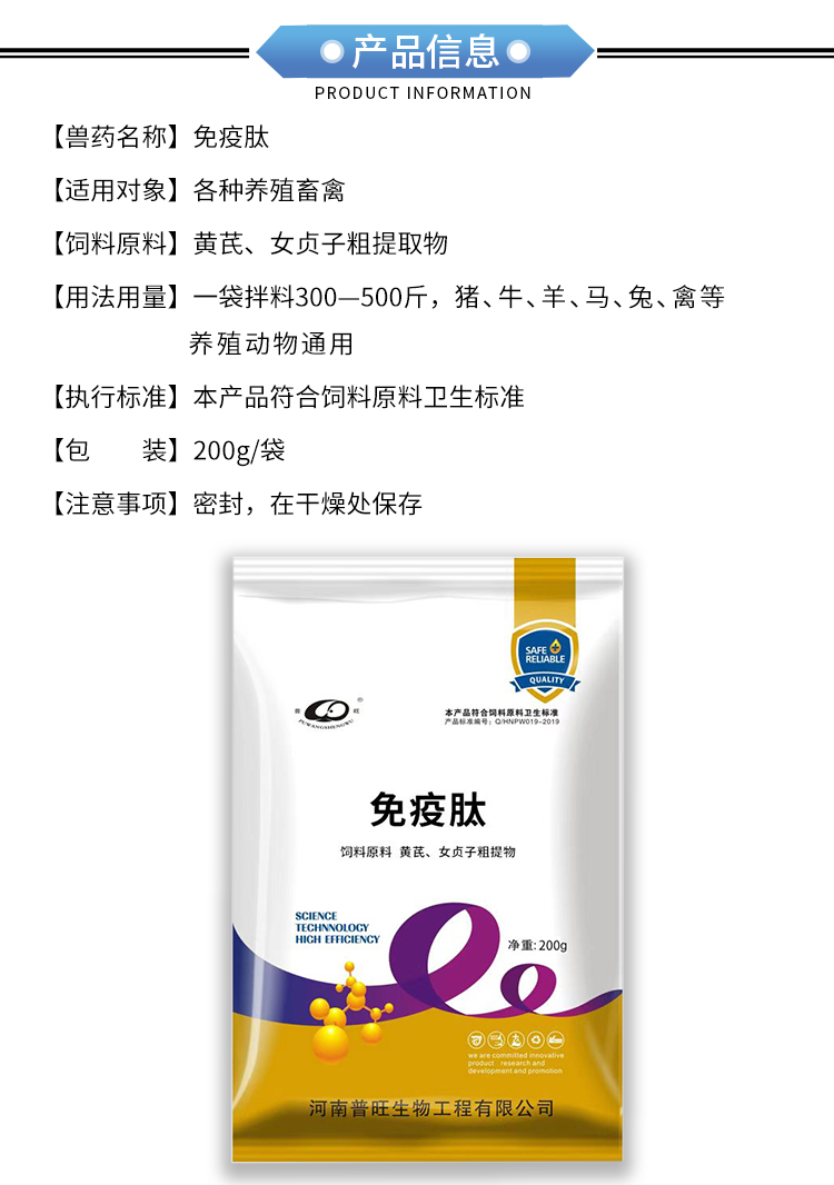 產(chǎn)品簡(jiǎn)介:提高家禽免疫機(jī)能,降低發(fā)病率,調(diào)節(jié)免疫系統(tǒng)從而保持腸道微生態(tài)平衡,營(yíng)養(yǎng)價(jià)值高,促進(jìn)消化吸收。